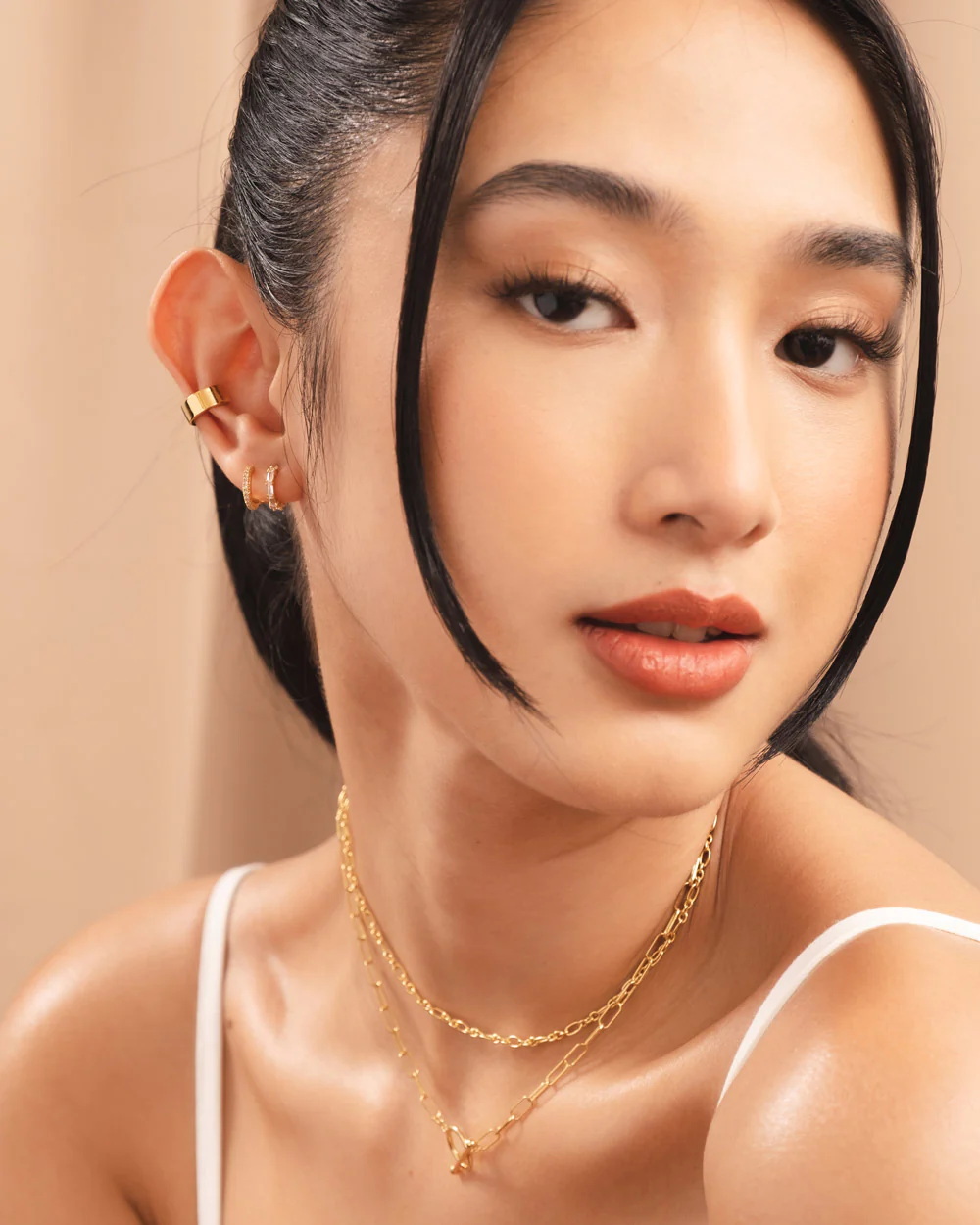 Featuring both round cut and baguette cut cubic zirconia, the Brooke Huggies make it easier than ever to stylishly double stack in a cinch, with only one piercing required. Forget worrying about designing your ear stack, this pair has that covered.