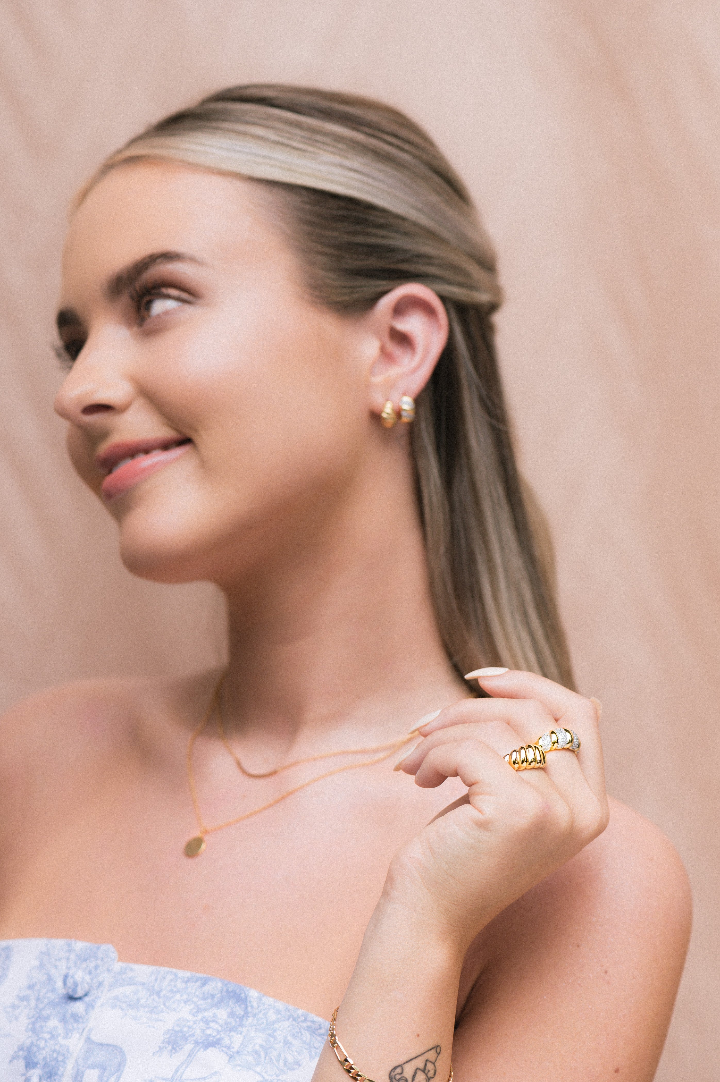 Meet the Colette Gold Ring. Featuring a glow not unlike the morning sun or a layer of glaze on a buttery pastry, this gold statement ring features a pavé-set and croissant-inspired design. Did somebody say culinary chic?