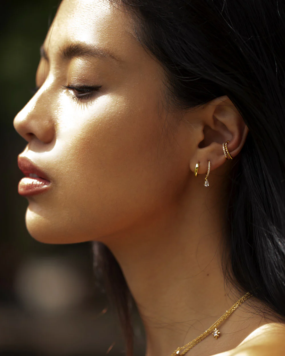 Style a classic and sophisticated ear stack with the Dew Huggies. Set with sparkling pavè stones and dangling pear crystals, making them the perfect chic choice for everyday wear.