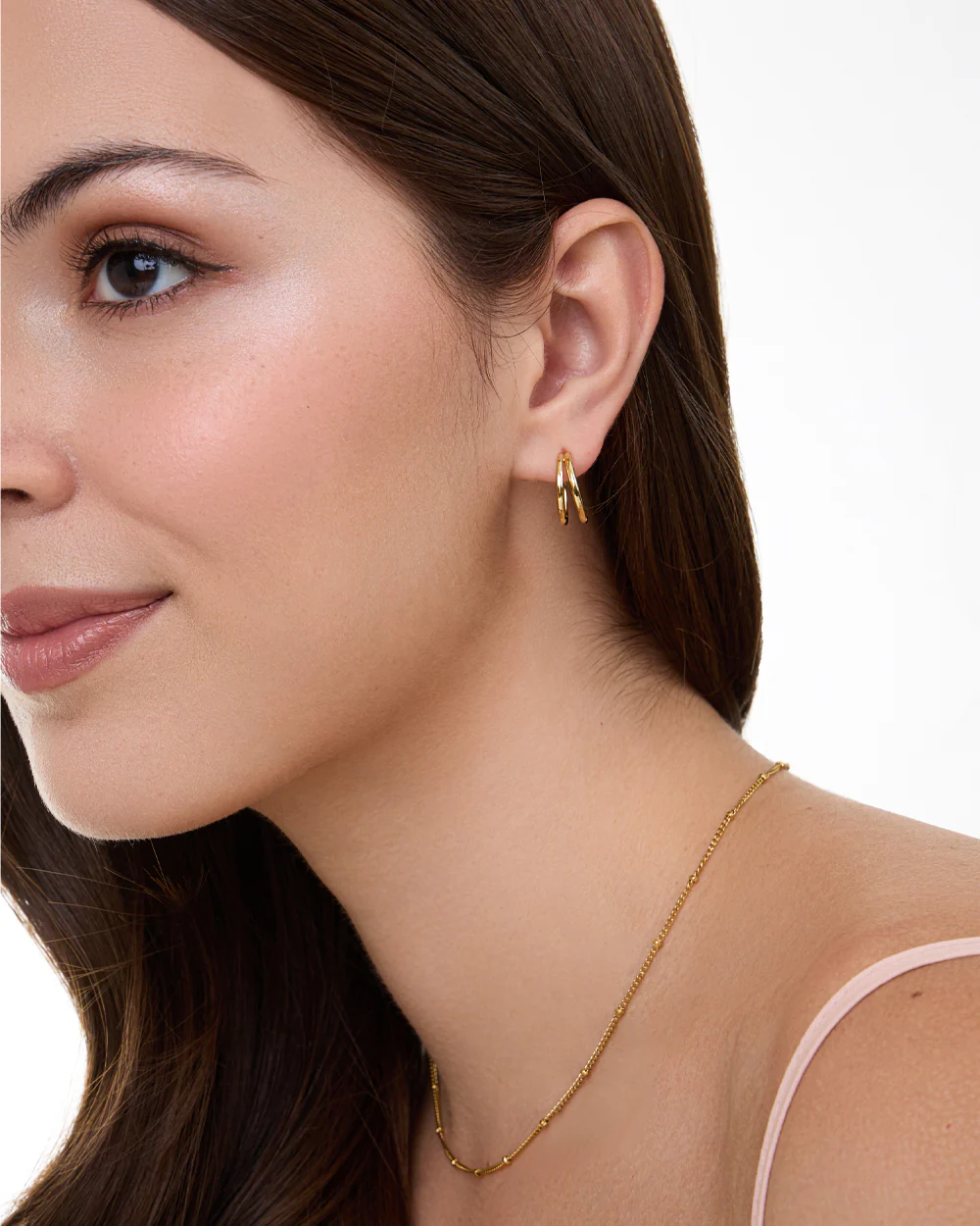 The Nadine Gold Hoops ensure easy elegance is always at hand. Forget fashion dilemmas; these everyday illusion earrings are designed to suit every outfit you’ve got.